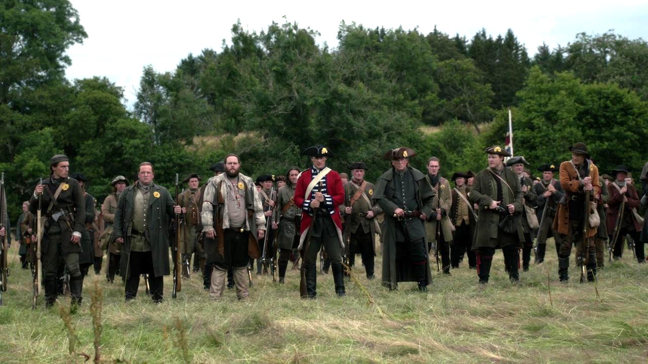 Le gouverneur Tryon encourage Jamie à revêtir la tunique rouge, et, devant la mine défaite de l’Écossais, se fait un malin plaisir de préciser : « Vous êtes l’un de mes meilleurs officiers. Je ne voudrais pas qu’on vous prenne pour un insurgé ».