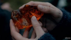 D’ailleurs, pendant que nous en sommes à évoquer les symboles, pourquoi ne pas rajouter celui qui consiste à attribuer à l’ambre le pouvoir de calmer les peurs et le sentiment de manque ? Ce qui, pour le coup, donne au geste de Claire une tout autre dimension puisqu’elle l’offre à Jamie juste avant qu’il n'aille se battre à Culloden avec la ferme intention d’y mourir et qu’il s’y retrouve immobilisé des heures durant, attendant la mort, couché sur ces plaines ruisselant du sang des Écossais.