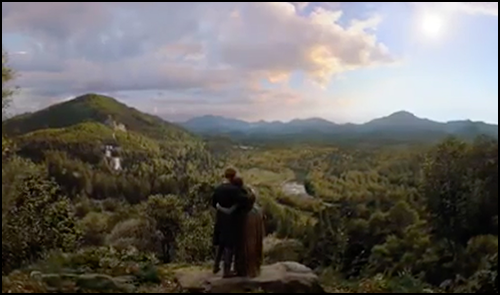 Nous entendons d'abord cette progression d'accords percutante à la fin de "The False Bride" avec ce magnifique plan large, représentant Jamie et Claire regardant vers l'horizon. La section rythmique bluegrass et les cordes symphoniques se gonflent ensemble dans un magnifique crescendo, l'un de mes moments musicaux préférés de la saison.