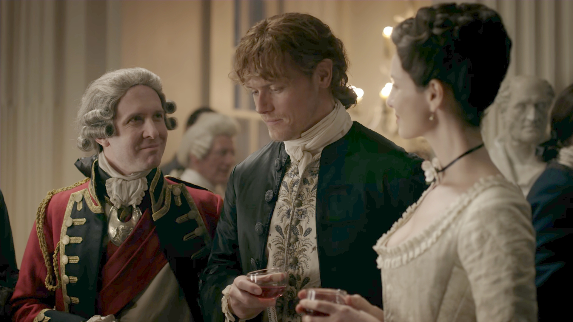 - 3 - En rentant chez lui, Fergus a la bonne surprise de trouver Claire et Jamie venus sur invitation du gouverneur pour assister à une pièce.